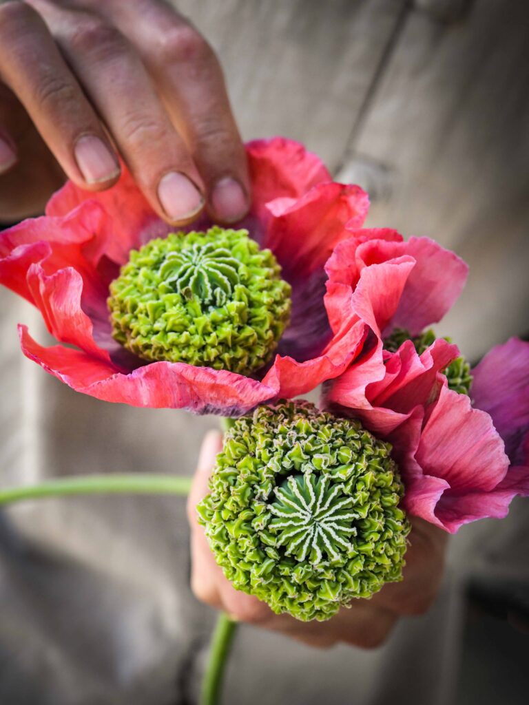 Poppies are best sown directly into the ground, because they don’t like having their roots disturbed. We usually sow ours early spring (March – April) or late summer (August – September) for blooms the following year. The timing depends a bit on your climate.