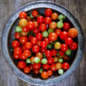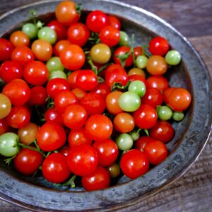 Developed by us, an heirloom that lives up to its name! Its small stature means it is as comfortable in a hanging basket or container as it is in your veg beds. It requires no pruning or staking and is both blight and drought resistant. This tomato will thrive on neglect and reward you with a crop of delicious sweet red cherries.