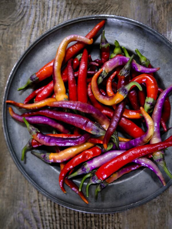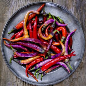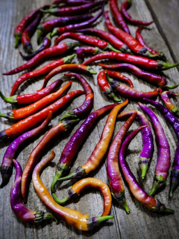 A rare and beautiful heirloom chilli in a striking bright purple colour that gradually turns red as it ripens. Easy to grow and super productive, it is a culinary favourite with a medium heat and a delicious sweet finish.