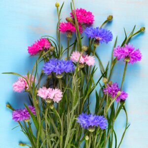 First introduced in the 1960s, this charming dwarf cornflower was one of the first bred especially for home gardeners — and it’s easy to see why it became such a hit. Compact, bushy plants with no need for staking, burst into a joyful mix of colours all summer long, from rich maroon and rose pink to lavender, sky blue and pure white.
