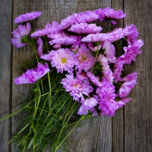 Think candyfloss for the garden – these cosmos burst with frilly, double blooms in the sweetest shade of pink. They’re the frothy cousins of the cosmos family, bringing cottage-garden charm and armfuls of cut flowers for vases all summer long.