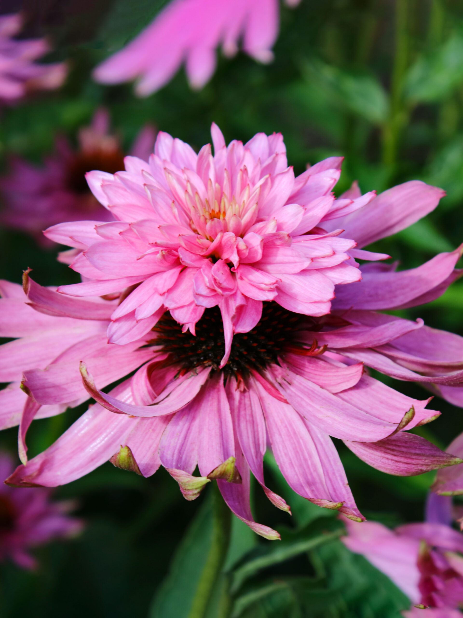 This is a real head-turner, producing its first layer of bold purple petals and then sprouting a second tier of petals perched on top. A drought tolerant perennial once established and beautiful, sturdy cutting flower.