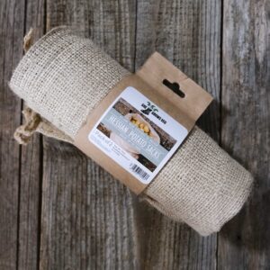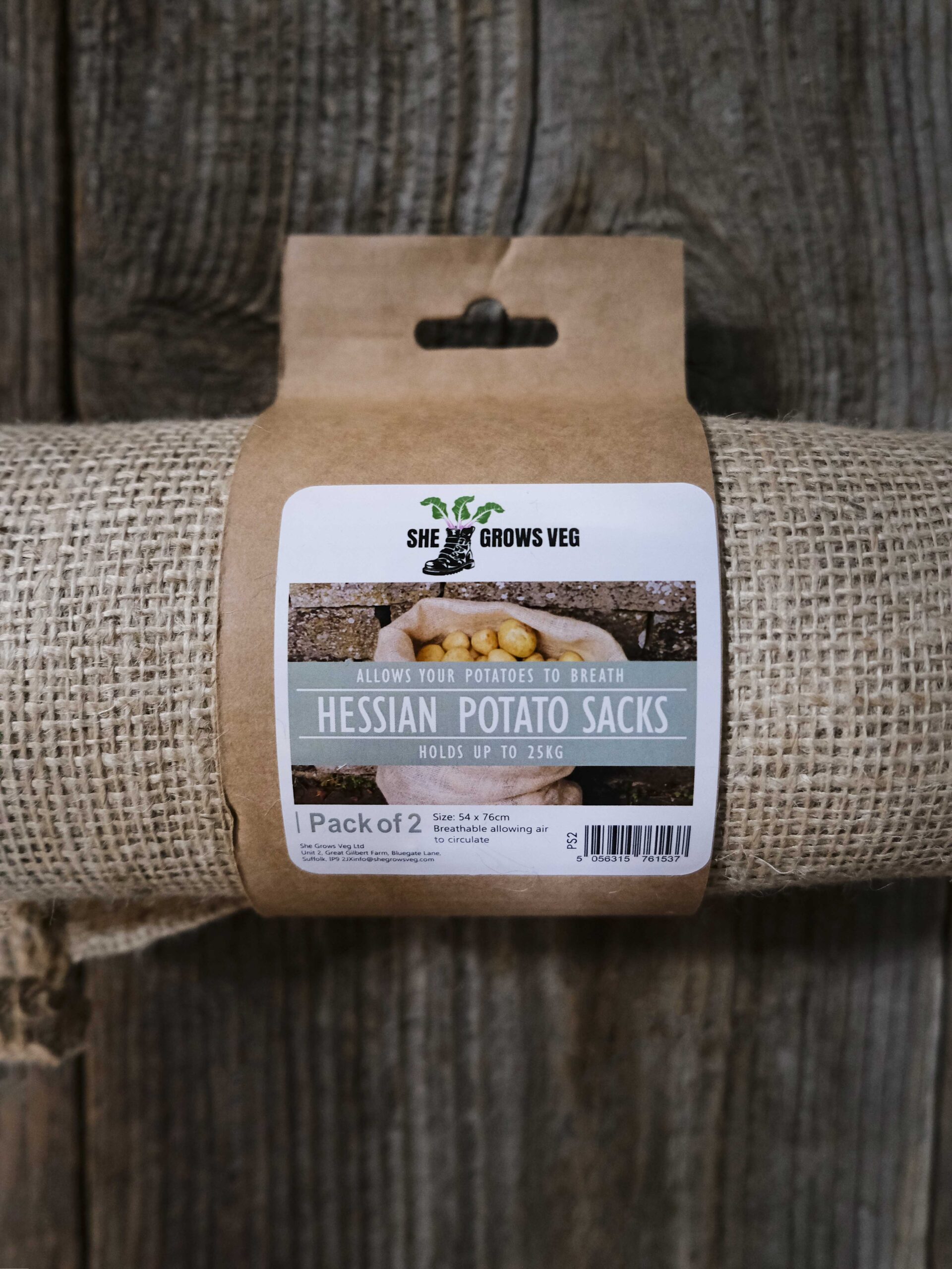 The woven hessian fabric is strong and washable, making it suitable for long term use in the garden or home. Air flow through the fabric keeps potatoes cool and dry, which helps prevent sprouting. Using hessian potato sacks gives you a trusted method to store potatoes without plastic.