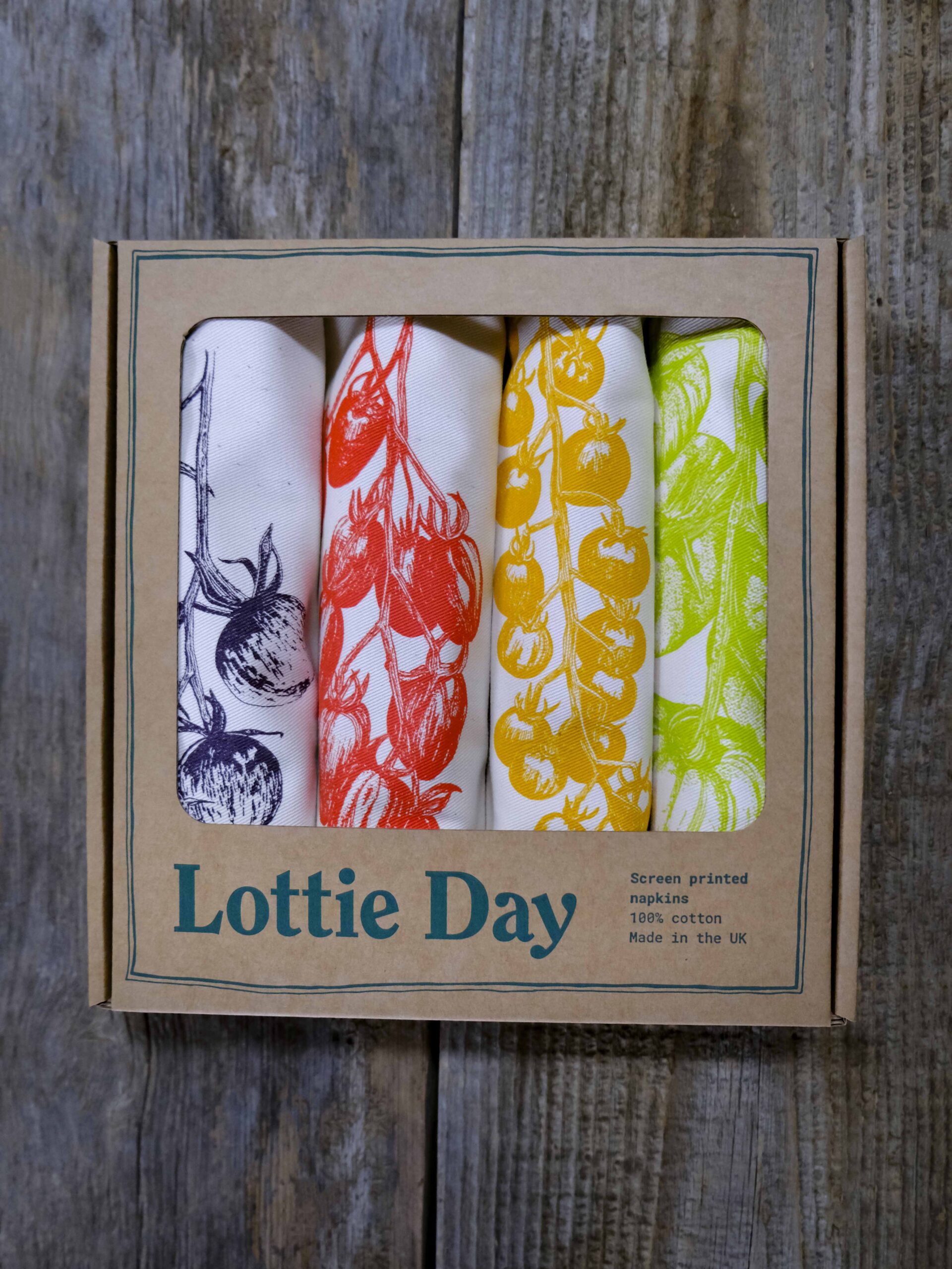 Printed on organic cotton, these napkins are washable, reusable and made to last?because style and sustainability belong on the same table. Designed by Norfolk artist Lottie Day and loved by the She Grows Veg team.
