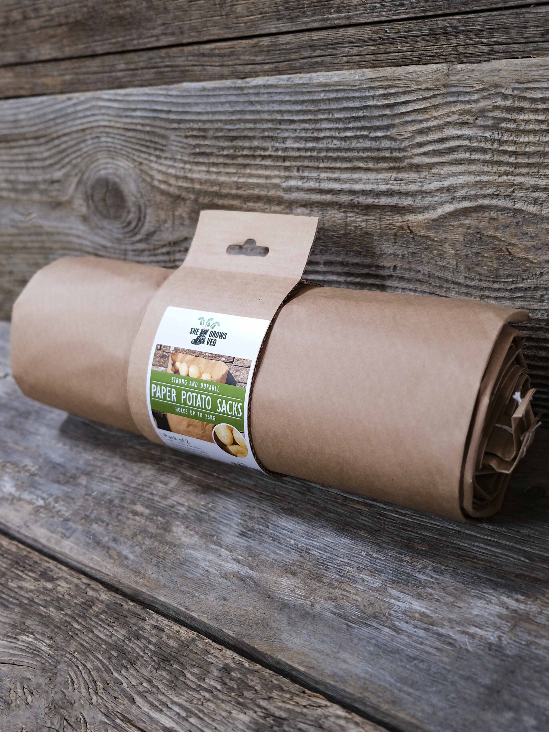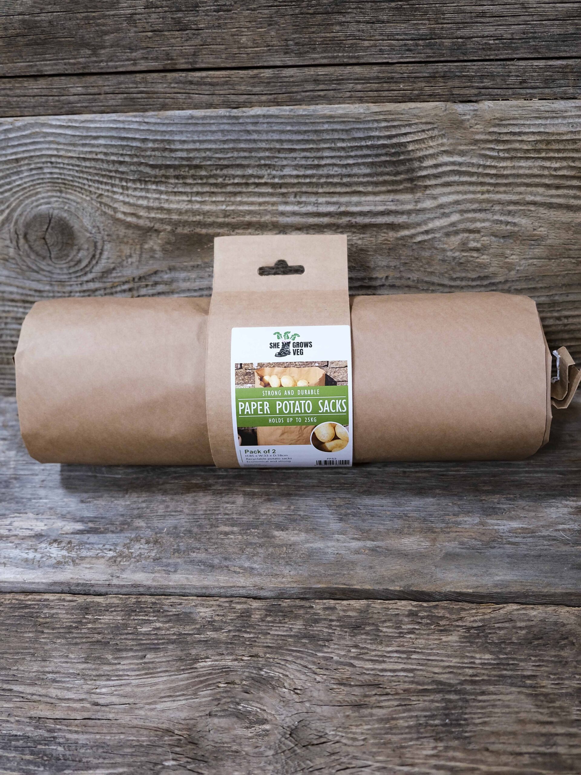 These potato sacks are made from heavy duty paper, designed to hold up to 25kg of potatoes securely. The breathable paper material reduces the chance of rot and helps keep potatoes dry. Paper sacks for potatoes are a traditional and trusted method for home storage.