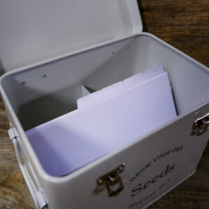 A practical storage tin for gardeners who like to keep their seeds easy to find and protected. The midnight-black finish looks good in the shed or on the shelf, and the dividers make it simple to sort packets by crop, season, or sowing time. Straightforward, tidy, and genuinely useful.