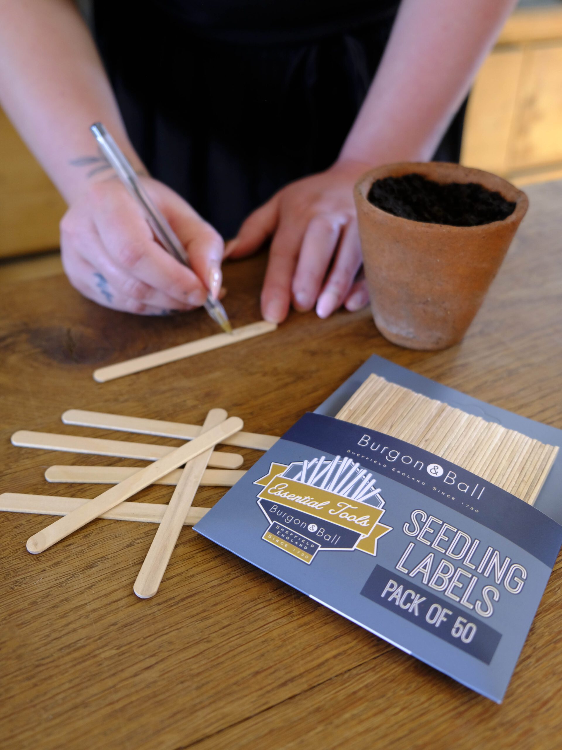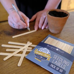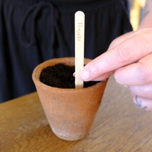 A simple, sustainable way to keep track of your seedlings. These natural wooden labels are plastic-free, easy to write on, and can be reused year after year – just sand off the writing and go again.