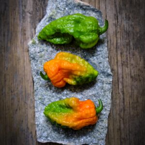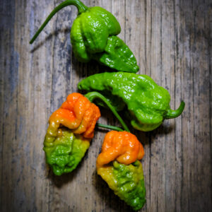 This is a fearsome beast of a chilli bred for heat, with twisted, stinger-like fruits that look as intense as they taste. Developed in Italy and scoring over 1,400,000 on the Scoville scale, it delivers a searing, slightly sweet burn that builds to a full-on inferno – not for the faint-hearted. A brutally hot showstopper for true chilli thrill-seekers.