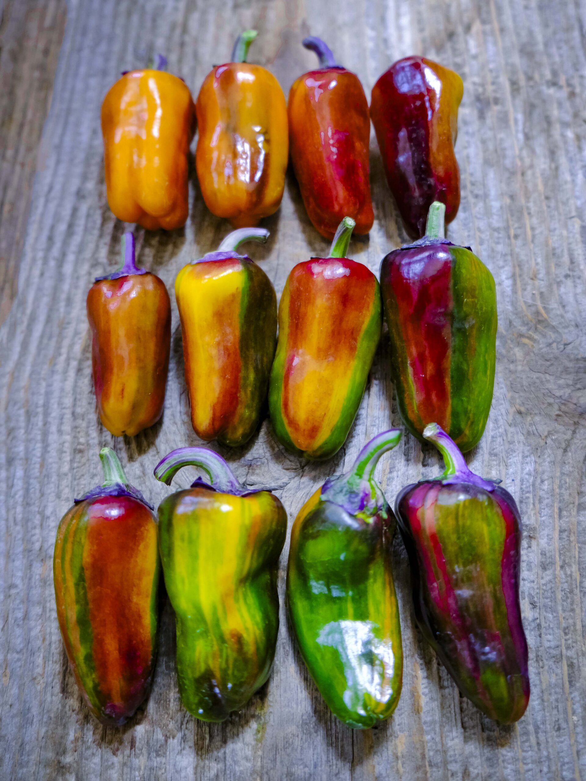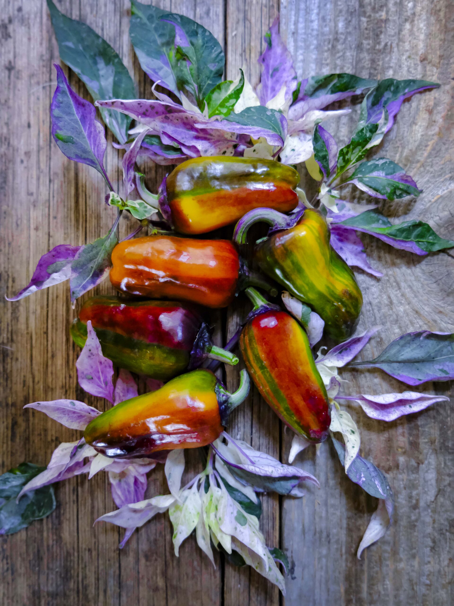This might just be the prettiest pepper in the world. ‘Collage’ is a vibrant mix of colour and crunch, with blocky fruits that ripen through rainbow stripes of purple, green, red and orange. The foliage is as stunning as the peppers with variegated splashes of lavender, white and green. Peppers are juicy, sweet, and thick-walled – perfect for snacking or stuffing. A playful, eye-catching variety that’s as tasty as it is beautiful.