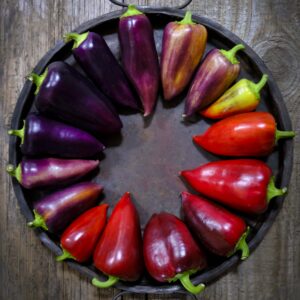 Sweet Pepper ‘Violet Sparkle’ lives up to its name with jewel-toned fruits that ripen from deep purple to ruby red in a dazzling display. Crisp, sweet, and full of crunch, they’re perfect for fresh snacking, salads, or stuffing. A compact, colourful plant that brings both flavour and flair to any garden.