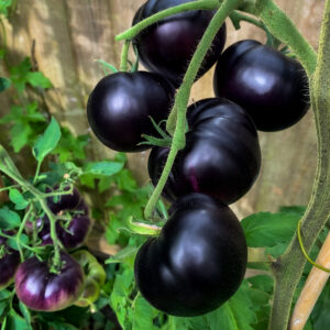 One of our all time favourite tomatoes, Black Beauty is as delicious as it is striking looking. It’s the darkest tomato in the world with skin packed with anthocyanin (the same antioxidant in blueberries), slice into it and you’ll find deep red flesh. We think it’s also one of the best tasting modern heirloom tomatoes, with a complex yet balanced flavour and earthy finish, ideal for slicing. Developed by renowned tomato breeder Brad Gates.