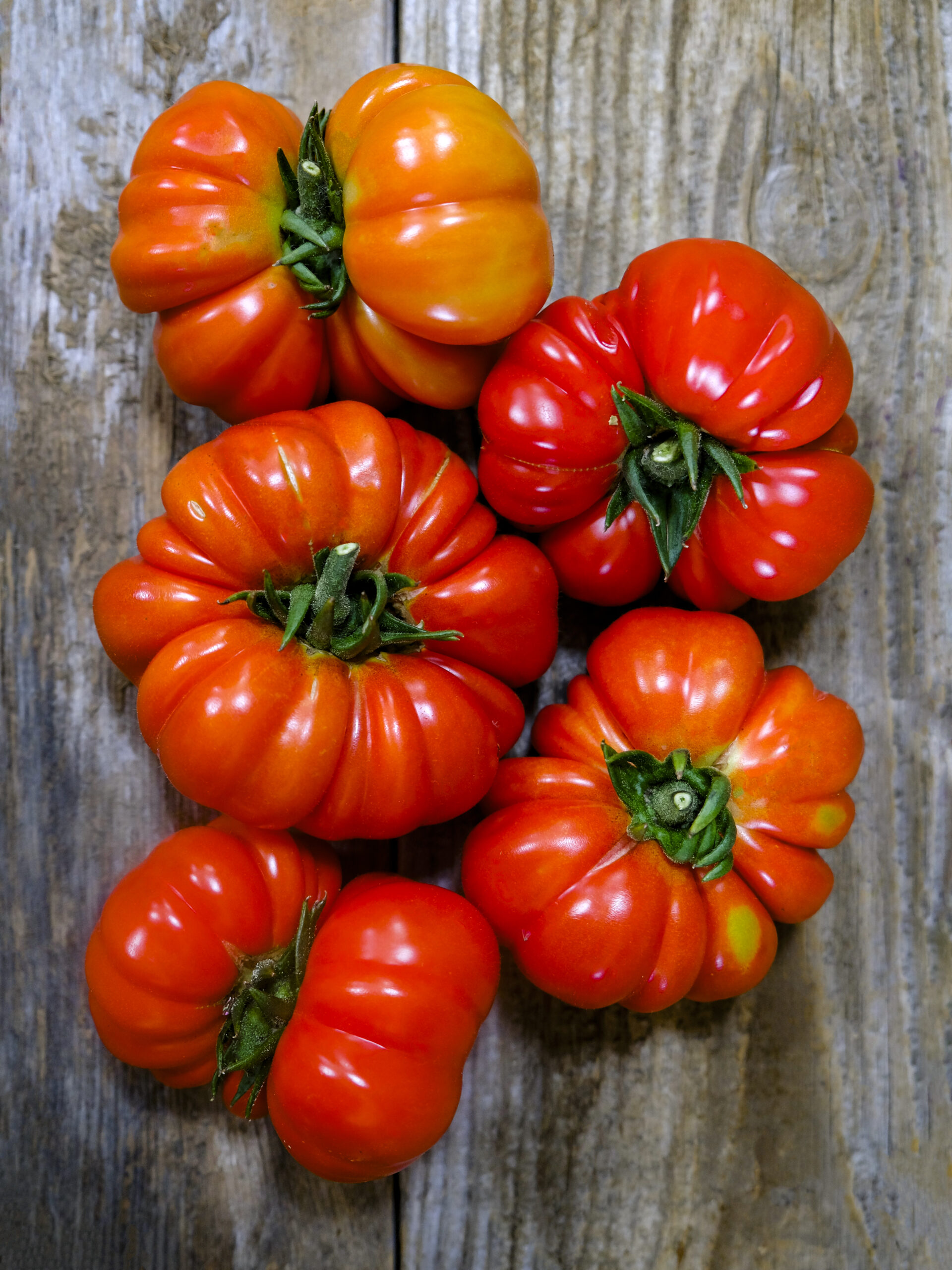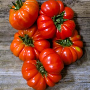 A striking and substantial beefsteak variety dates back to 18th century Italy and is considered a superior saucing tomato. Fruits are deeply ridged with rich juicy flesh that is also delicious eaten fresh. Withholding water during ripen will intensify the flavour of the fruit.