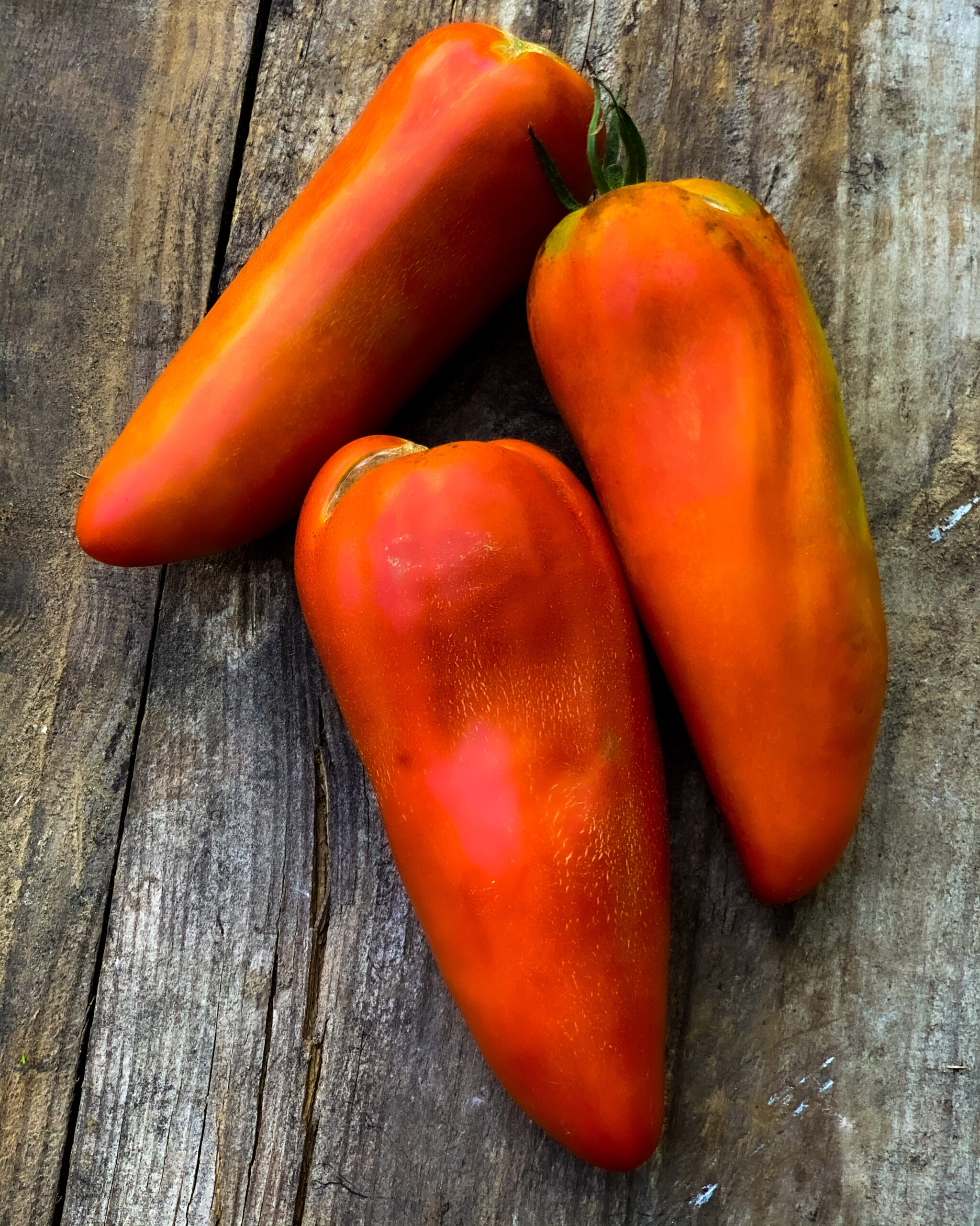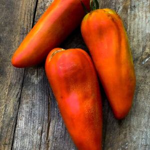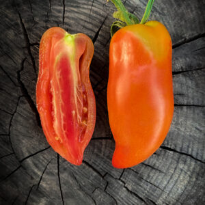Tomato ‘Jersey Devil’ is a fiery-looking paste variety with long, pointed fruits in blazing red, built for bold sauces and rich roasts. Meaty, sweet, and low on seeds, it brings concentrated flavour with zero fuss. A devilishly good choice for cooks who like their tomatoes intense and full-bodied.