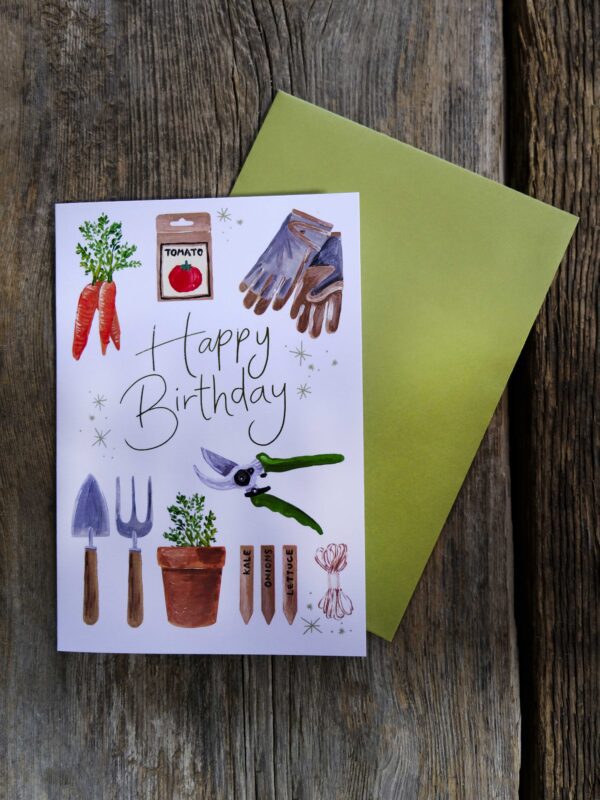 For the veg grower in your life who’d rather be in the garden than anywhere else! Whether it’s for Dad, your allotment-loving mate, or your compost-obsessed sister, this hand-painted birthday card is a root-to-tip celebration of their favourite pastime.