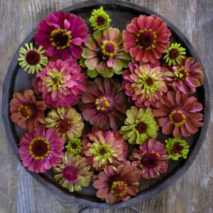 Rich antique raspberry-red petals fading to zingy lime-green at the centers, creating a vintage, painterly look. Each bloom is unique, bursting with colour variation that makes borders glow and bouquets unforgettable. Loved by pollinators and adored by flower arrangers, a must-grow favourite.